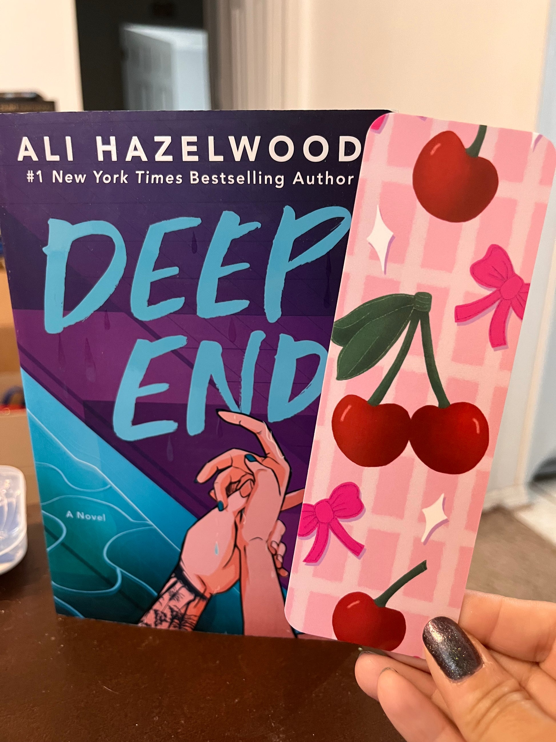 Cherries and Bows Pink Gingham Bookmark