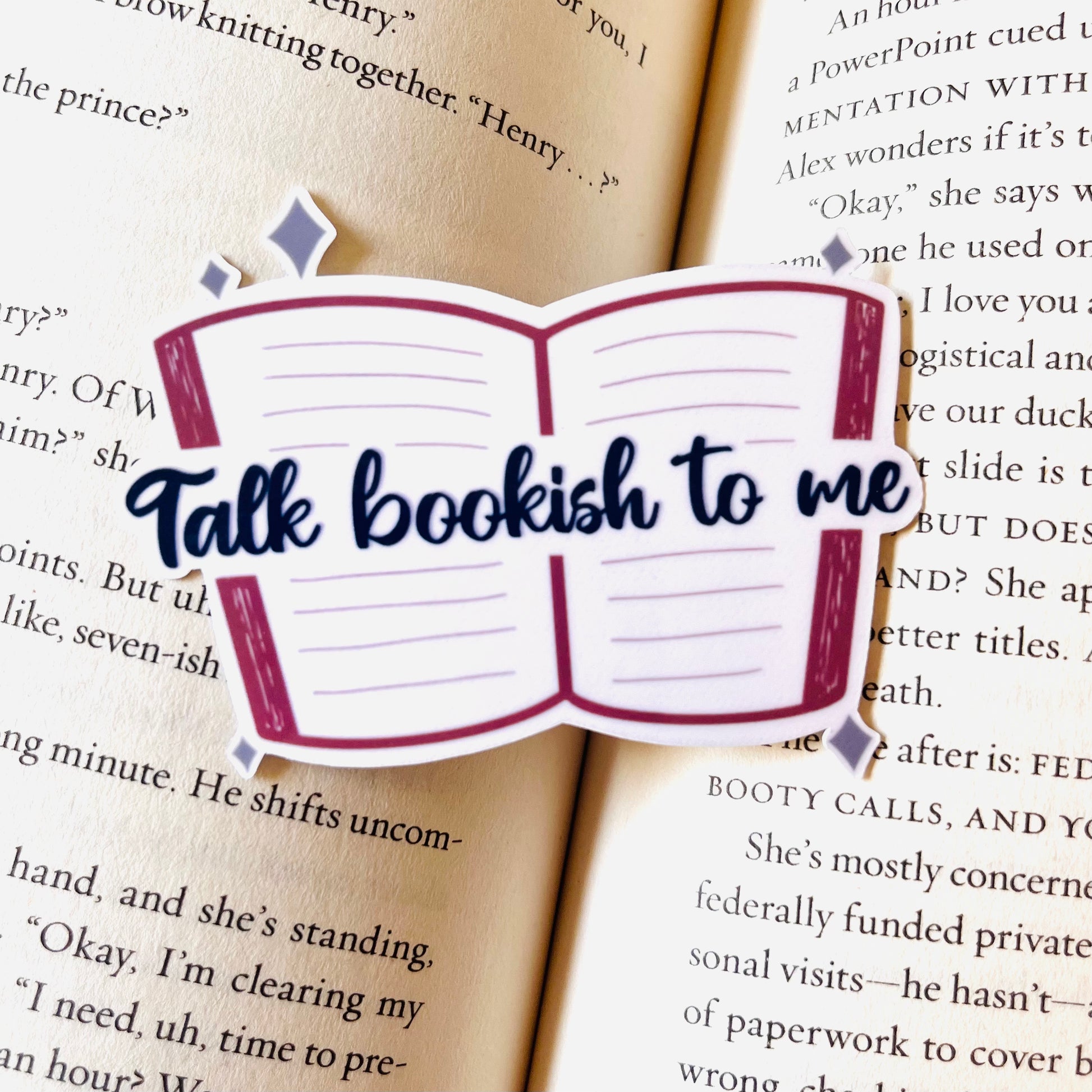 If the way to your heart is through books, you'll love this Talk Bookish To Me sticker!